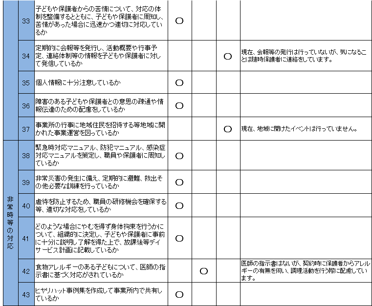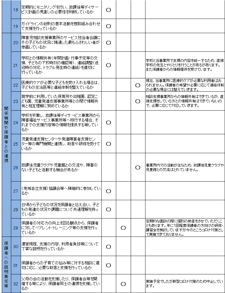 この自己評価表は、支援の質の向上のため、厚生労働省のガイドラインに沿って作成されたものです。