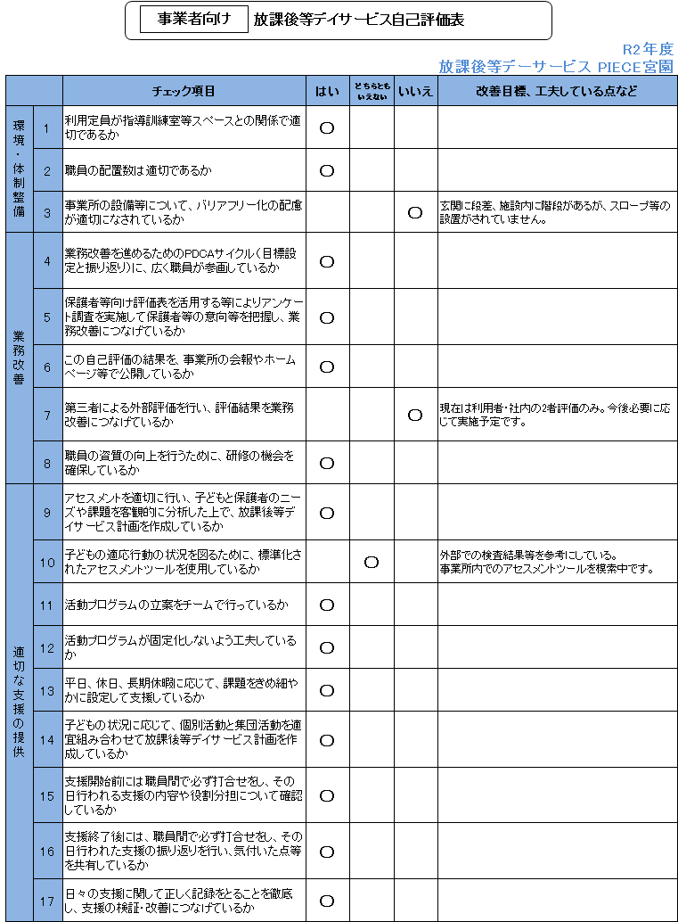 【PIECE宮園】R2年度事業者向け自己評価表