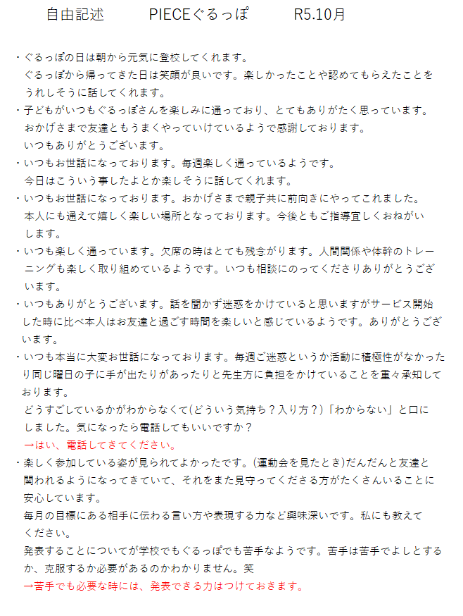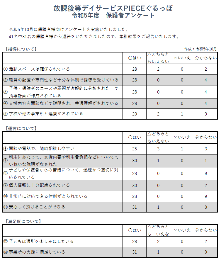 【PIECEぐるっぽ】R5年度保護者アンケート結果のご報告