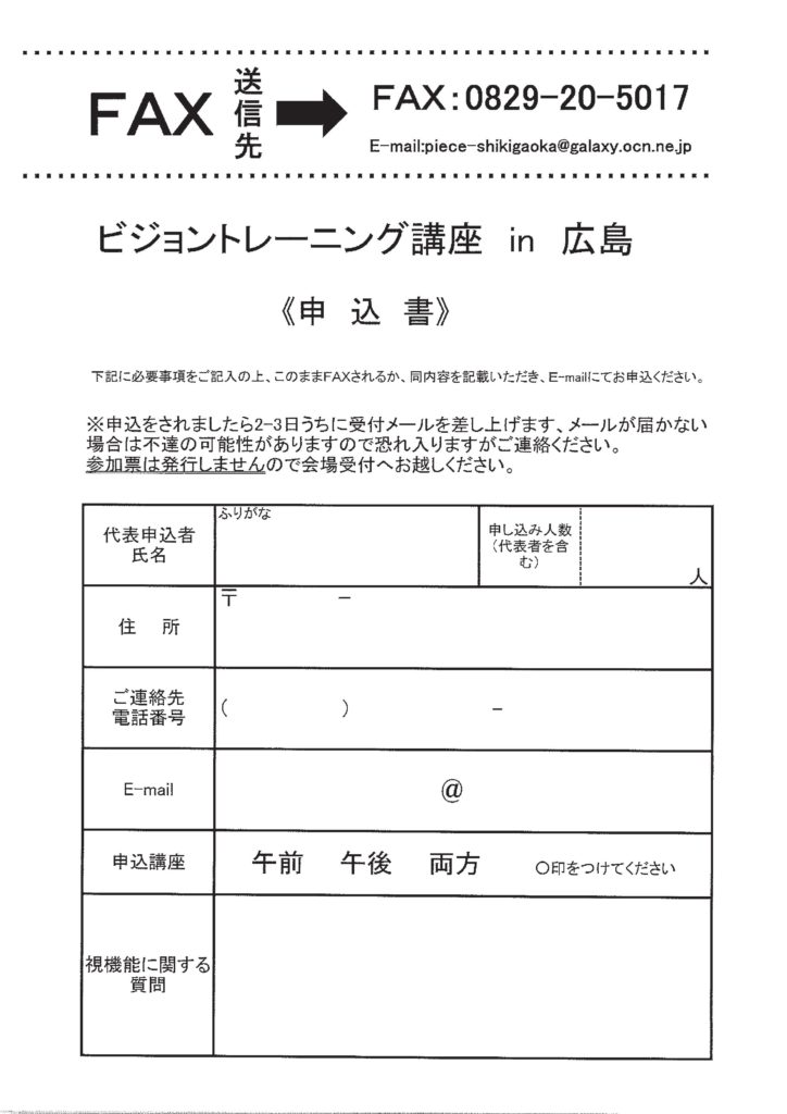ビジョントレーニング講座in広島のお知らせ。
