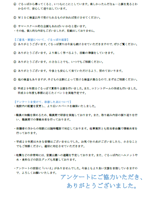 平成29年6月に保護者様向けのアンケートを実施いたしました。