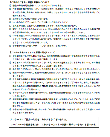 【PIECE宮園】平成29年度保護者アンケート結果のご報告