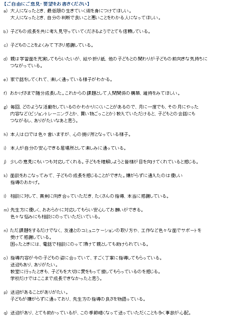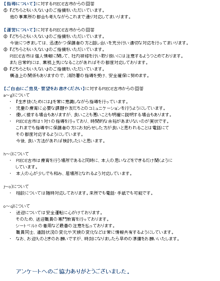 【PIECE古市】R元年度保護者アンケート結果のご報告