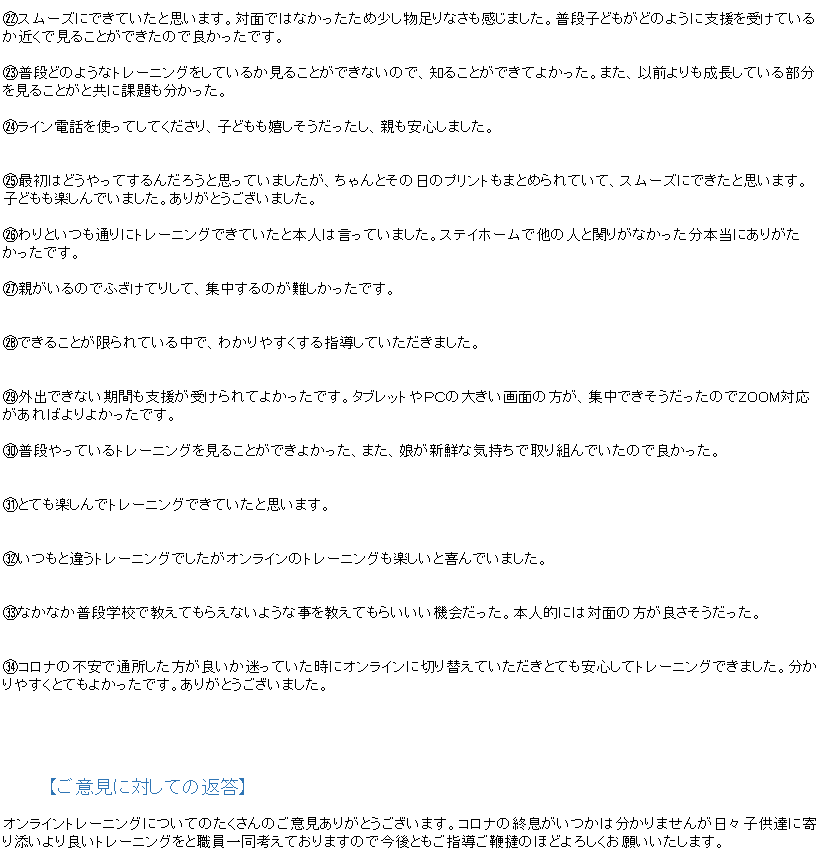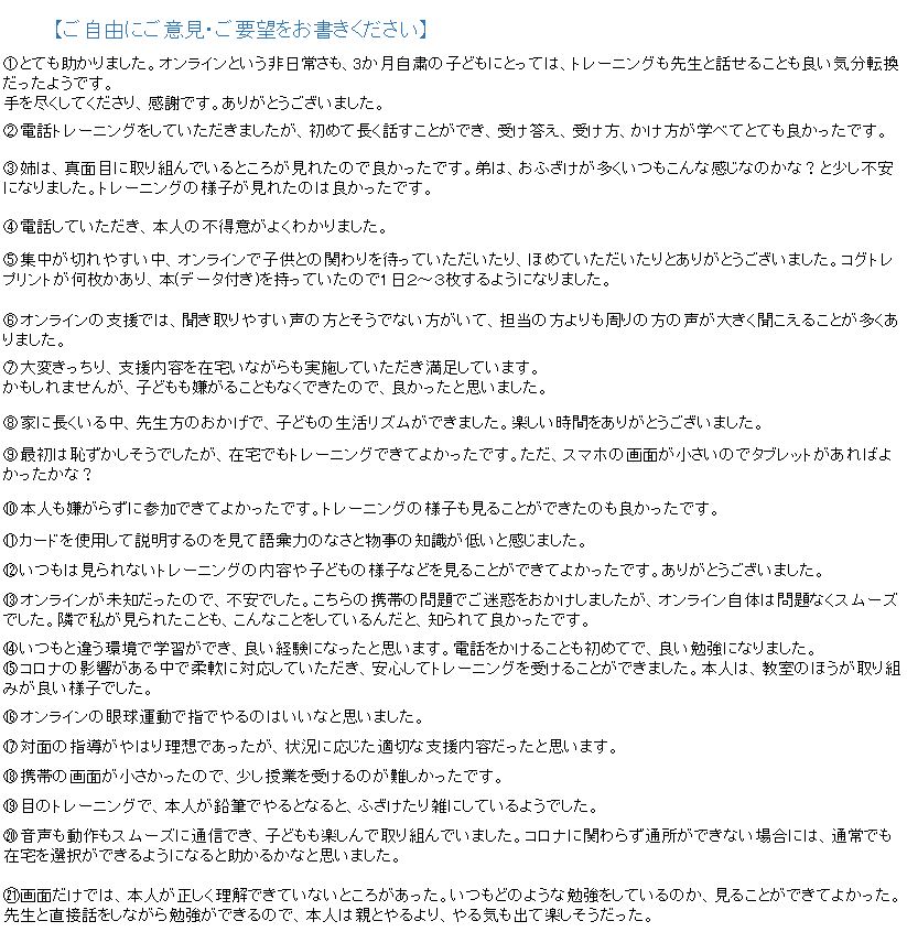 このアンケート結果をもとに、これからのよりよい支援に繋げていきたいと思います。
